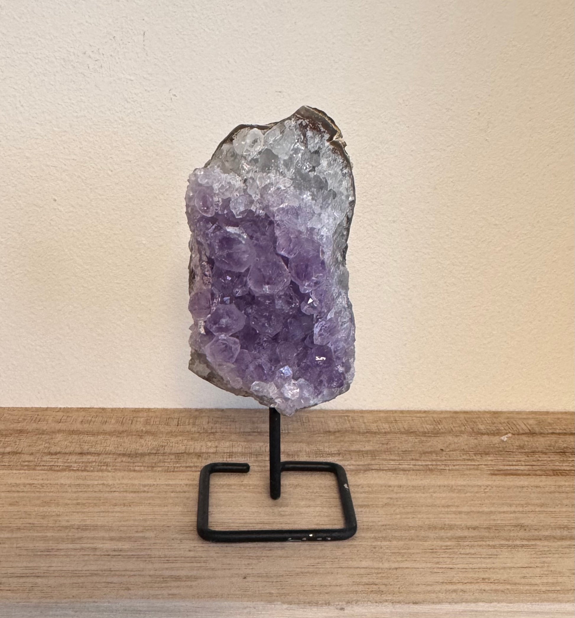 vertus :Elle est traditionnellement utilisée pour apporter calme, équilibre psychique et sérénité. En combattant le stress, l'insomnie ou la colère, l'améthyste favorise la concentration et la méditation
