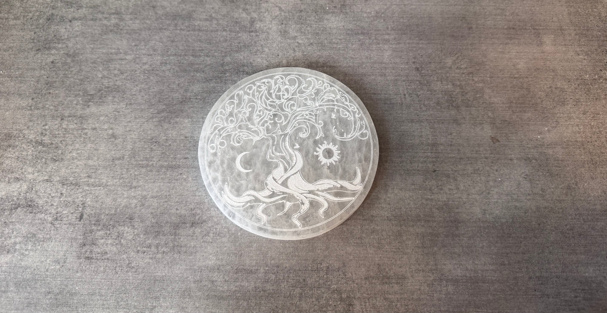 Arbre de vie en Sélénite avec demi lune et soleil 12 cm