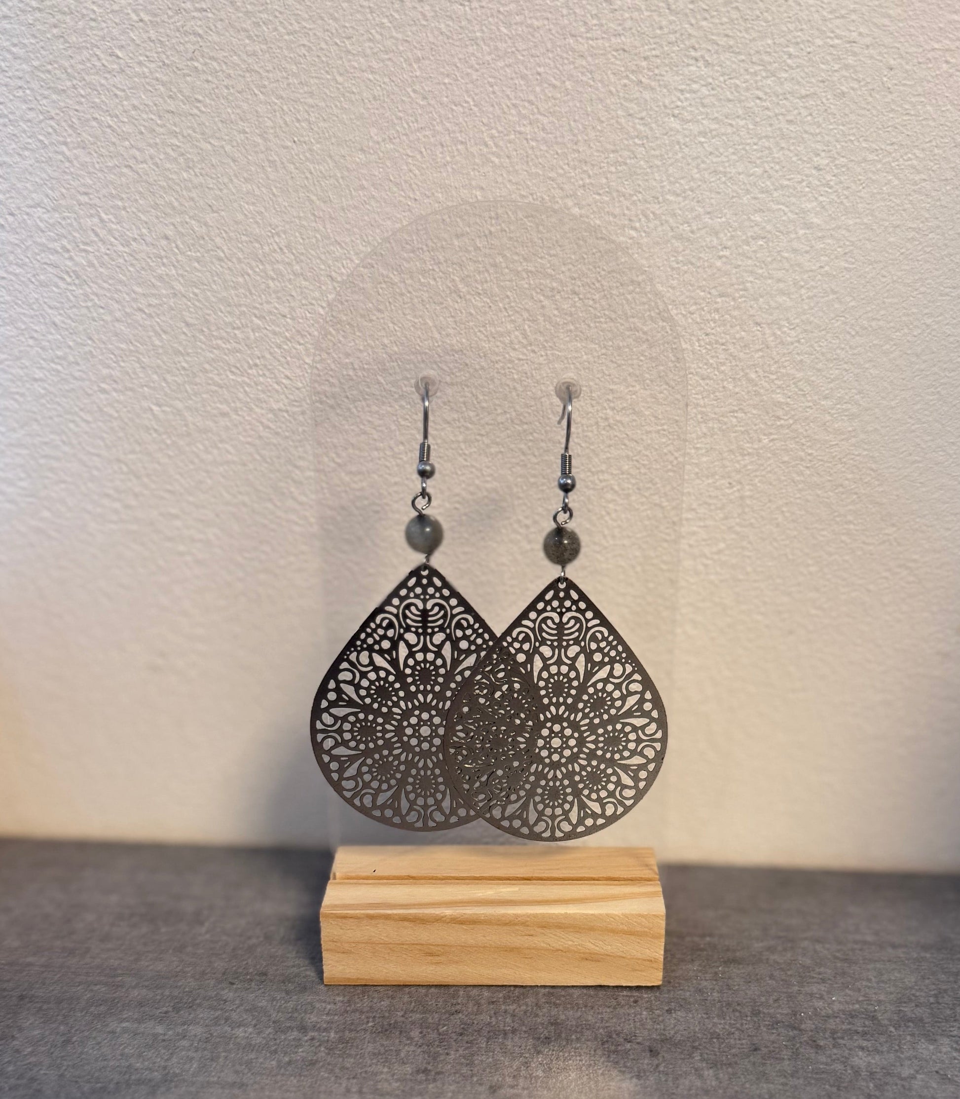Élégantes boucles d’oreilles composées d’une labradorite naturelle aux reflets uniques, montée sur acier inoxydable hypoallergénique. Résistantes, légères et parfaites pour un usage quotidien ou pour offrir.