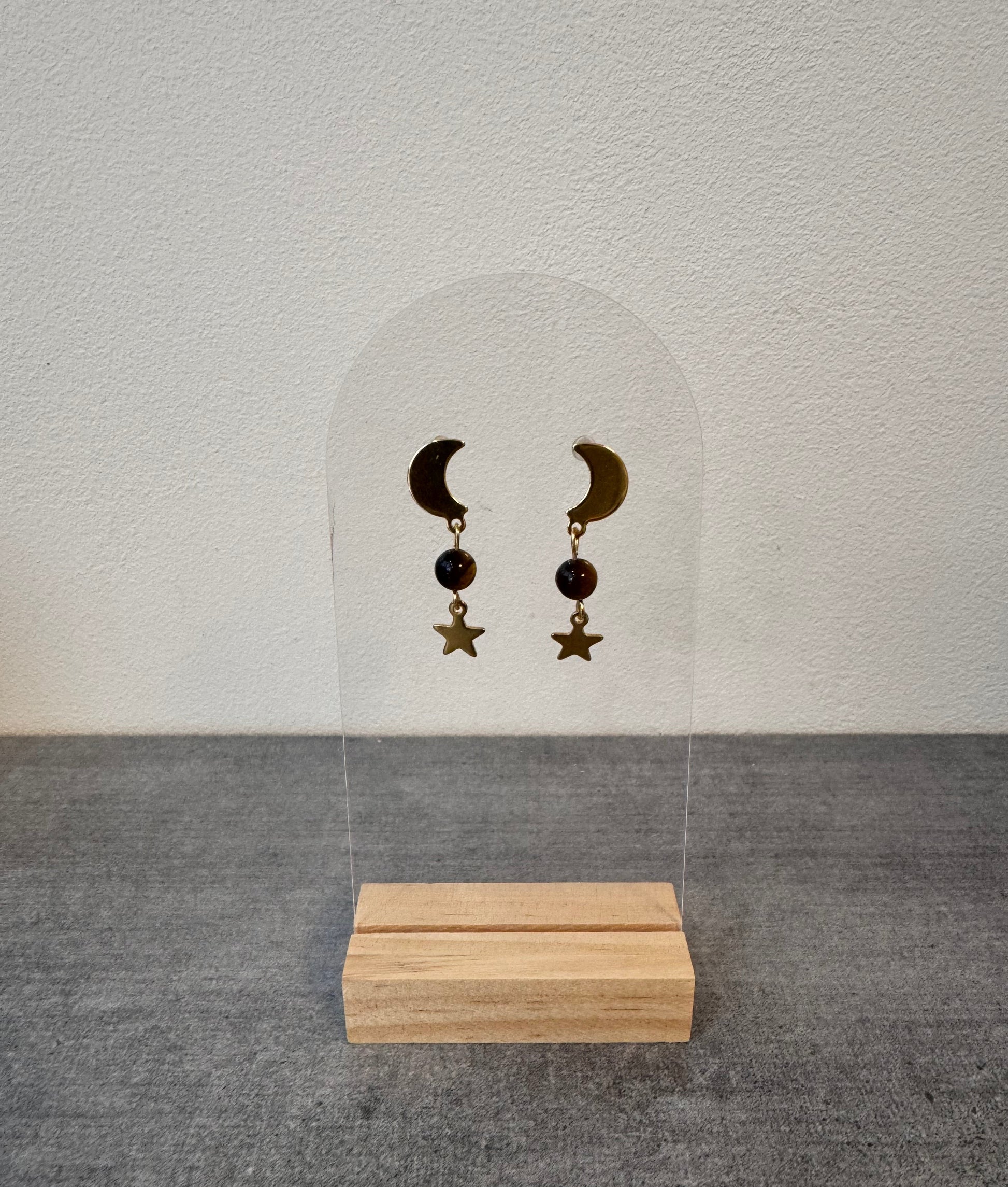 Boucle d’oreille en acier inoxydable et œil de tigre✨