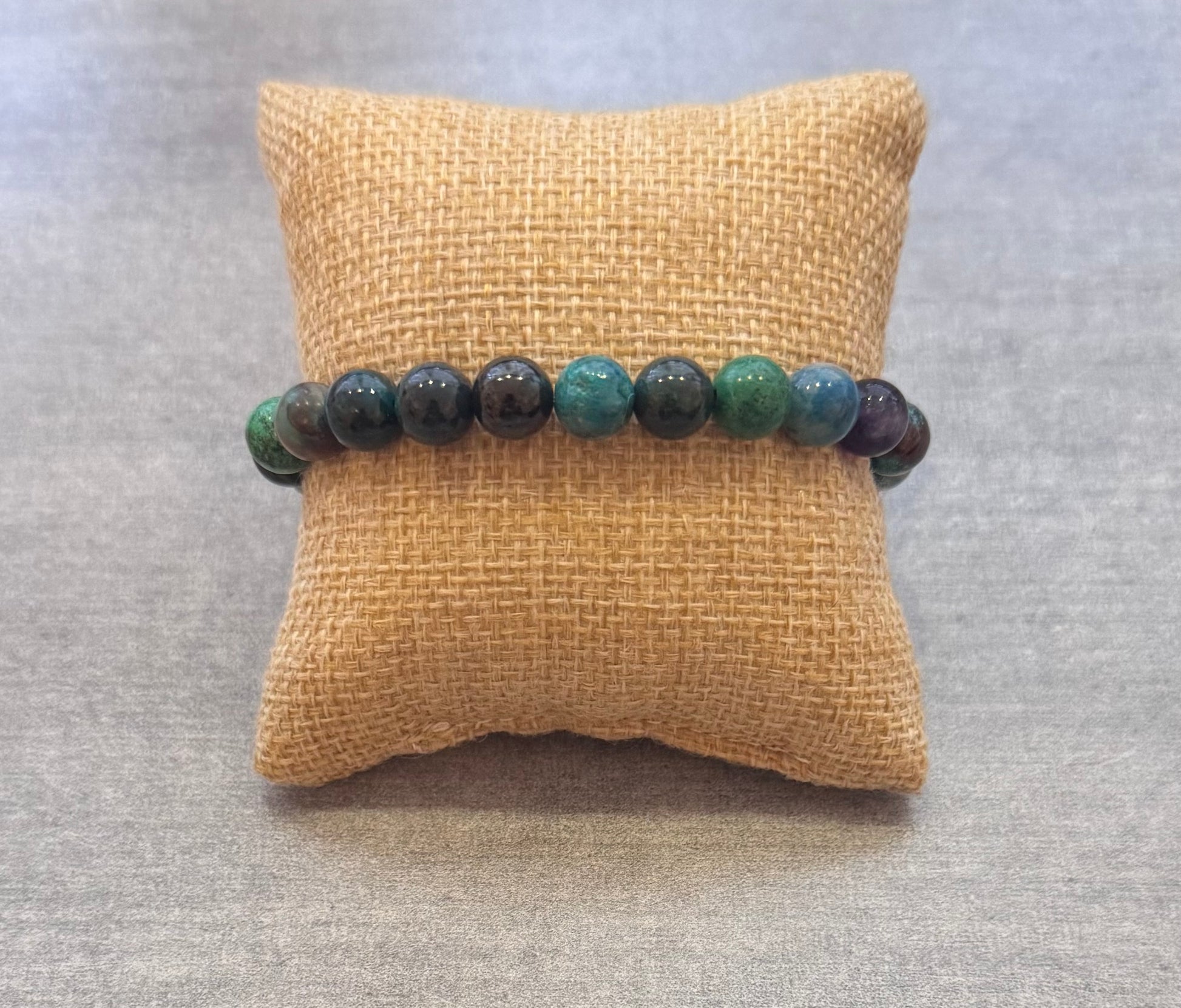 Vertus :Cette pierre mouchetée apporterait la paix et l'équilibre intérieur. En effet, elle agirait comme un répulsif contre les énergies négatives et accroît la clarté d'esprit et la confiance en soi. De fait, elle fut longtemps utilisée comme un talisman de protection.La Chrysocolle est considérée comme la pierre de l’apaisement