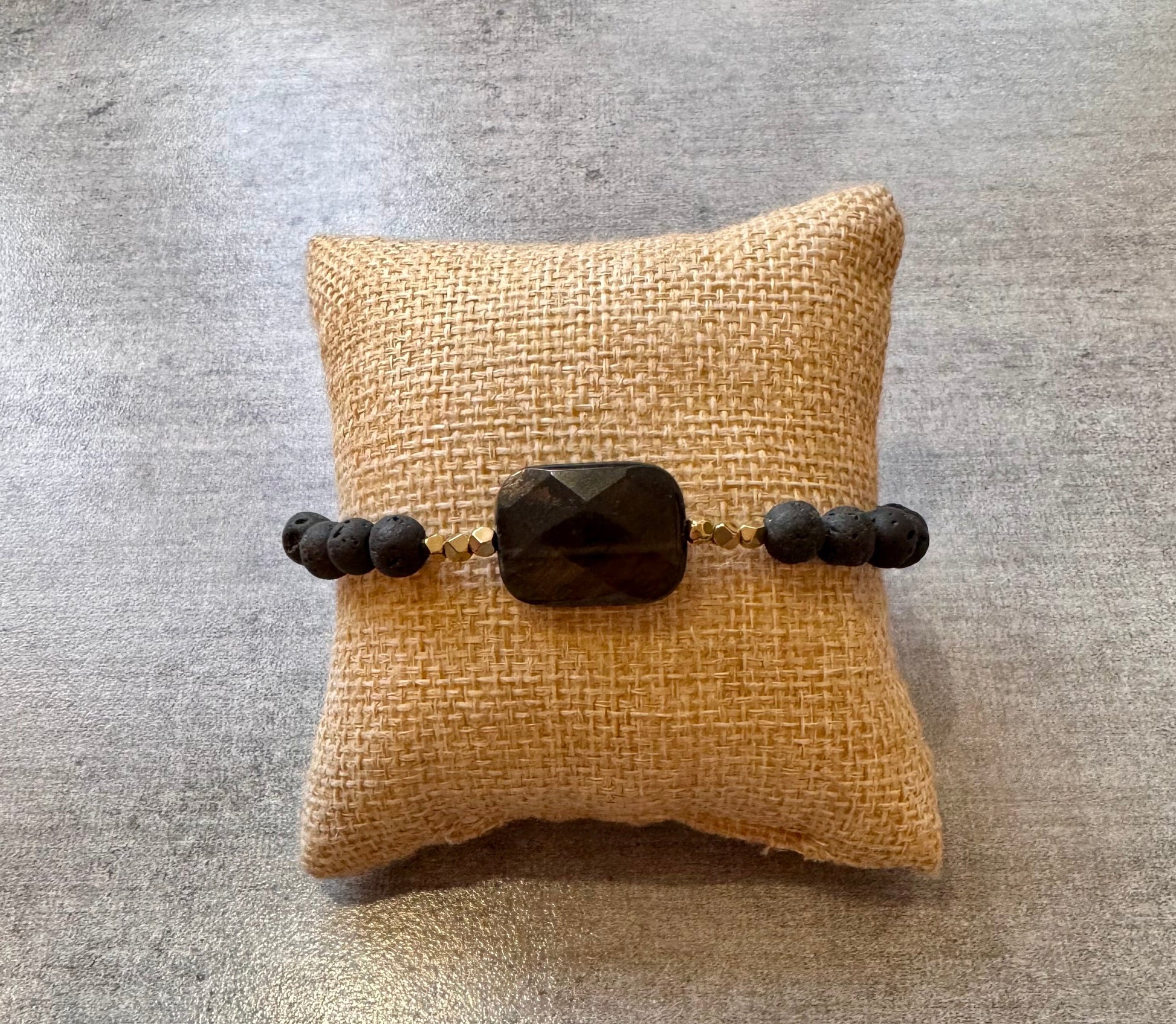 Bracelet en Oeil de tigre, hématite et pierre de lave
