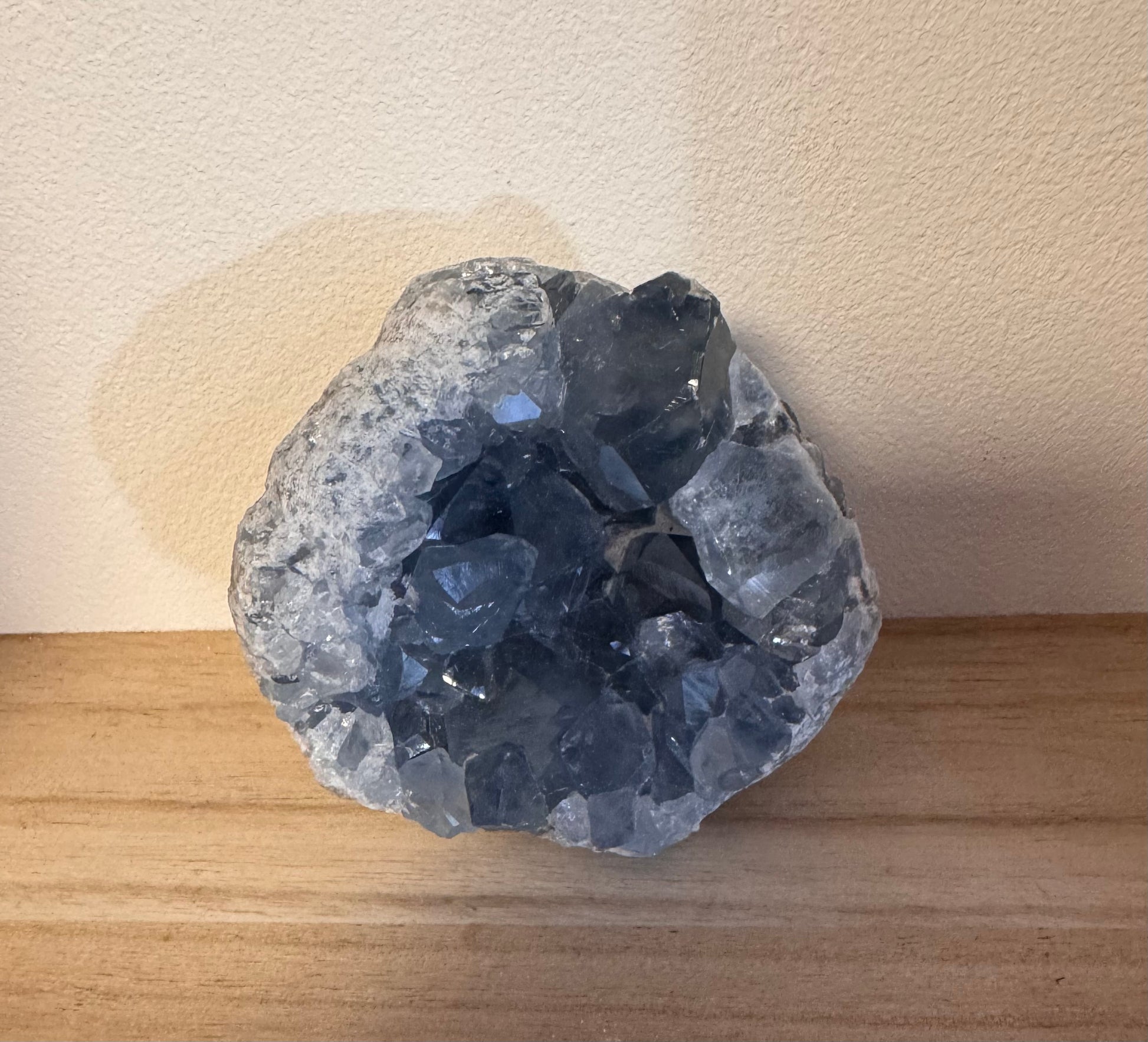 Célestine naturelle pierre lumineuse aux reflets bleu ciel. Parfaite pour la méditation, la décoration zen ou pour apporter sérénité et clarté à votre intérieur.