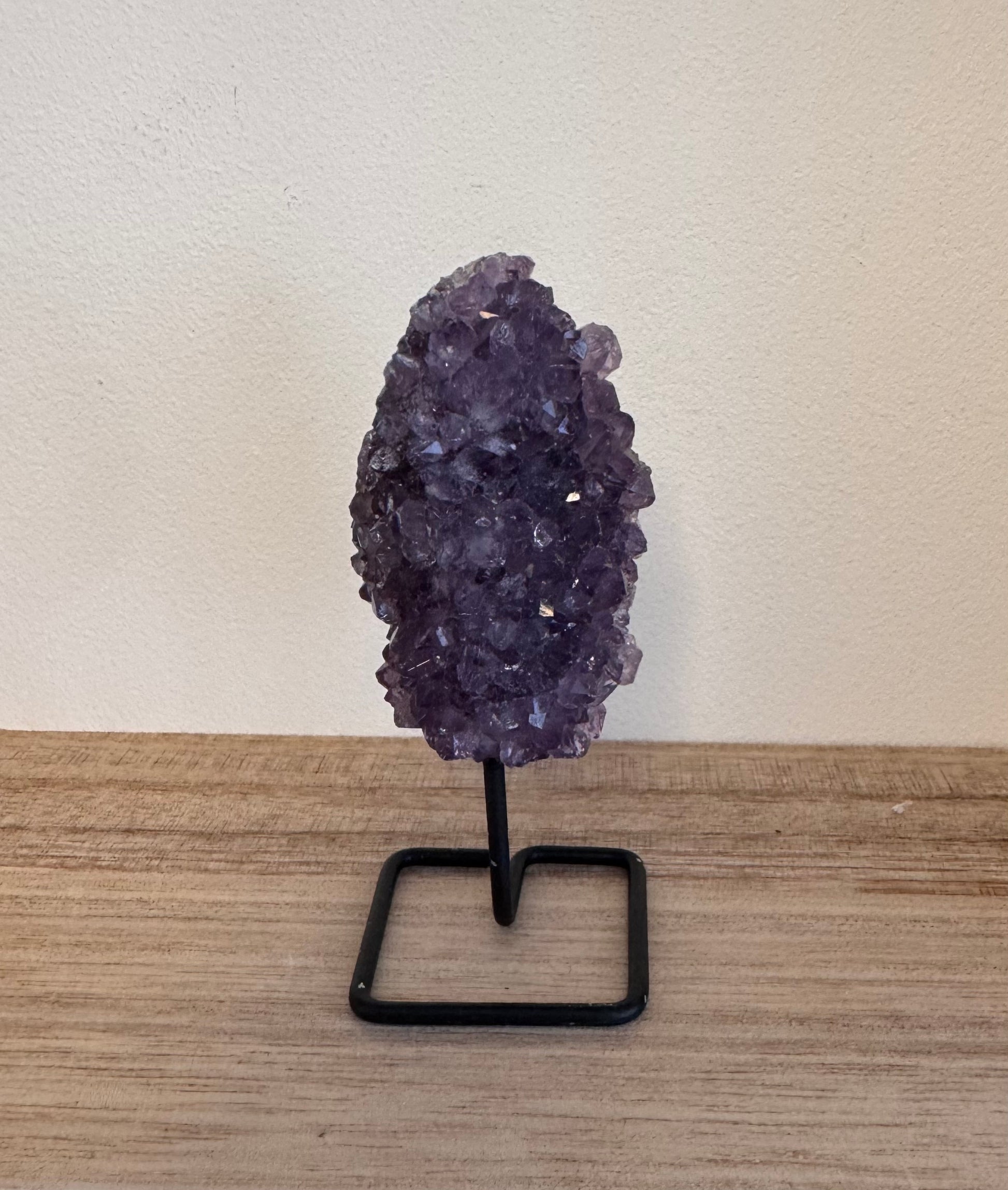 vertus :Elle est traditionnellement utilisée pour apporter calme, équilibre psychique et sérénité. En combattant le stress, l'insomnie ou la colère, l'améthyste favorise la concentration et la méditation